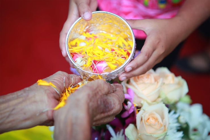เราต่างตักตวงความสุขให้ได้มากที่สุด เวลาในช่วงวันหยุดจึงมักหมดไปกับกิจกรรมต่างๆ ที่ว่ามา กระนั้น ธรรมเนียมปฏิบัติอันงดงามก็ยังคงมีให้เห็นไม่ขาด แม้จะเป็นเพียงเวลาสั้นๆ ที่เราได้กล่าวขออโหสิกรรมต่อกัน ผู้เฒ่าผู้แก่ให้ได้ศีลให้พรกับลูกหลาน กลิ่นน้ำอบแป้งร่ำหอมกำจาย นับเป็นช่วงเวลาที่ทั้งอบอุ่นและศักดิ์สิทธิ์ในคราวเดียวกัน