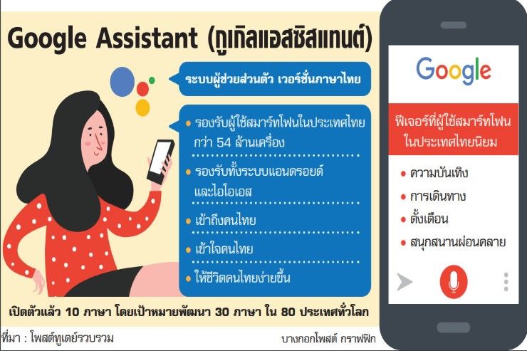 หลังใช้เวลาพัฒนากว่า 2 ปี ล่าสุด "กูเกิล" ก็ได้ฤกษ์ส่งผู้ช่วยส่วนตัวอัจฉริยะ "กูเกิลแอสซิสแทนต์" ในเวอร์ชั่นภาษาไทยให้คนไทยได้สัมผัสแล้ว