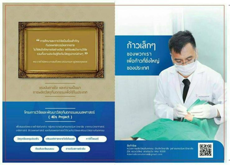เพื่อเป็นส่วนหนึ่งในการแก้ไขปัญหาดังกล่าว พวกเราซึ่งเป็นคณาจารย์จาก 4 คณะ ได้แก่ คณะวิทยาศาสตร์ คณะเภสัชศาสตร์ คณะสัตวแพทยศาสตร์ และคณะทันตแพทยศาสตร์ ภายใต้การดูแลของหลักสูตรสหวิชาสาขาทันตชีววัสดุศาสตร์ บัณฑิตวิทยาลัย จุฬาลงกรณ์มหาวิทยาลัย จึงได้ร่วมกันวิจัยและพัฒนาสร้าง Know-How เพื่อผลิตวัสดุทันตกรรมนานถึง 12 ปี