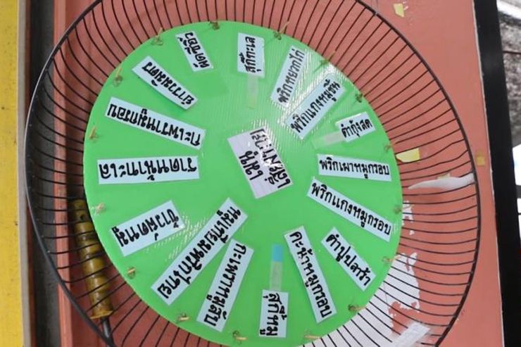 ทำให้ เชาว์ แก้วขันทอง เจ้าของร้านฮักล้นจาน ตั้งอยู่เลขที่ 519/1 ถนนหน้าเมือง ต.ในเมือง อ.เมือง จ.ขอนแก่น จึงนำเซียมซีเมนูอาหารมาให้ลูกค้าได้เสี่ยงทายว่าจะสั่งเมนูอาหารเด็ดอะไรมารับประทาน แต่เนื่องจากลูกค้าบางคนเสี่ยงไม่ค่อยเป็น เซียมซีมักจะหล่นกระจายหลายแท่ง พังไปแล้วหลายชุด อีกทั้งเกิดเสียงดังรบกวนลูกค้ารายอื่น จึงได้ซื้อมอเตอร์แล้วใส่ใบพัดพัดลมติดกับมอเตอร์ พร้อมเขียนชื่อเมนูอาหารต่างๆ ลงในใบพัดให้ลูกค้าสามารถเสี่ยงทายว่าวันนี้จะกินอะไรดี