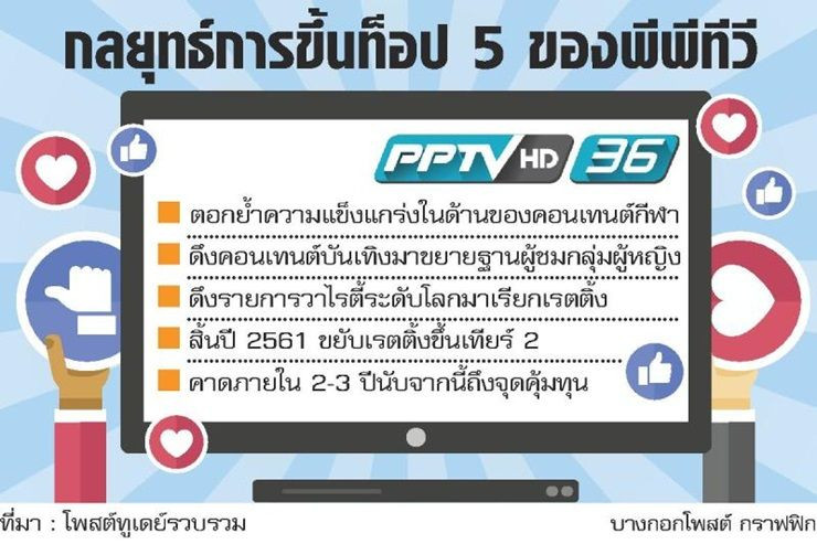 ผู้บริหารช่อง พีพีทีวี มั่นใจว่าสิ้นปี 2561 มีเรตติ้งอยู่ในอันดับ 6-10 และภายใน 2-3 ปี จะขยับขึ้นเป็นท็อปไฟว์พร้อมถึงจุดคุ้มทุน