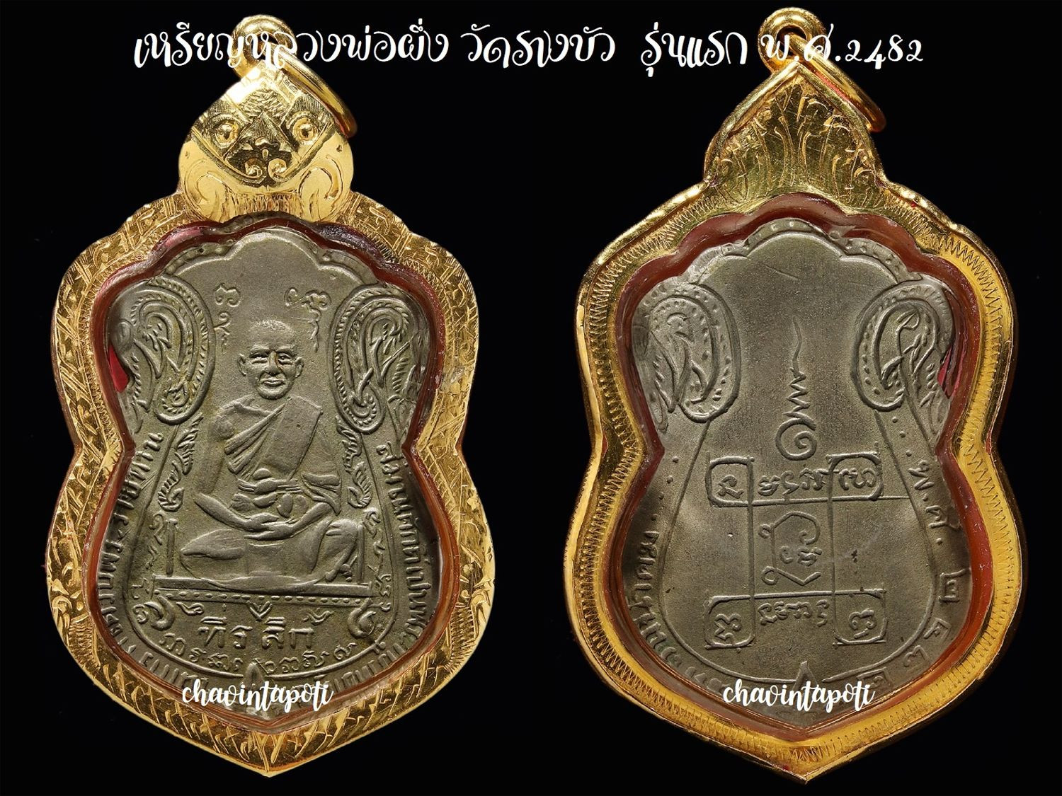 มาชมเหรียญหลวงพ่อผึ่ง หรือพระครูวิทยานุโยค วัดรางบัว ย่านภาษีเจริญ รุ่นแรก พ.ศ. 2482 ในวงการเรียกเหรียญนี้ว่า “รุ่นนิยม ที่ระลึก-เข่าชิด-ยันต์หยิก” จัดสร้างในงานทำบุญฉลองสมณศักดิ์ที่ “พระครูวิทยานุโยค” เมื่อวันที่ 1 มี.ค. 2482 หลวงพ่อจัดสร้างเหรียญรุ่นแรกแจกแก่ลูกศิษย์และผู้ศรัทธาท่านได้แค่รุ่นเดียว เพราะท่านได้ละสังขารมรณภาพในปี 2483 ปีถัดมานั่นเอง