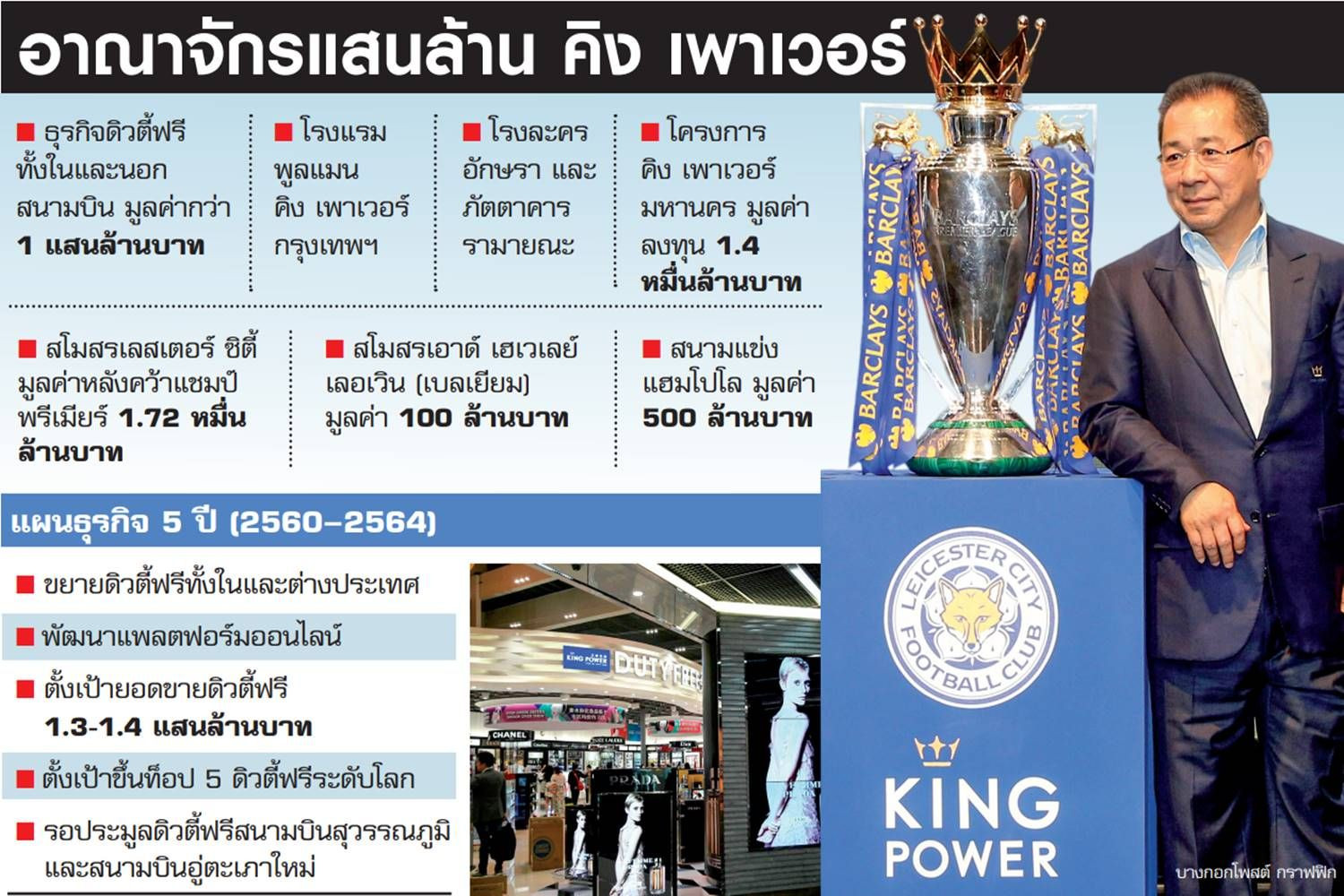 ไม่เพียงเท่านี้ วิชัยยังขยายธุรกิจโดยเข้าซื้อกิจการสโมสรเลสเตอร์ซิตี้ ตั้งแต่เดือน ส.ค. 2553 ซึ่งใช้เงินมากกว่า 5,000 ล้านบาท ก่อนที่ในปี 2559 จะสร้างปรากฏการณ์คว้าแชมป์พรีเมียร์ลีกเป็นครั้งแรกในรอบ 132 ปี ทำให้จิ้งจอกสยามในมือของคิง เพาเวอร์ สามารถสร้างชื่อเป็นที่รู้จักทั่วโลก โดยมูลค่าของสโมสรหลังคว้าแชมป์ขยับขึ้นสูงกว่า 1.72 หมื่นล้านบาท