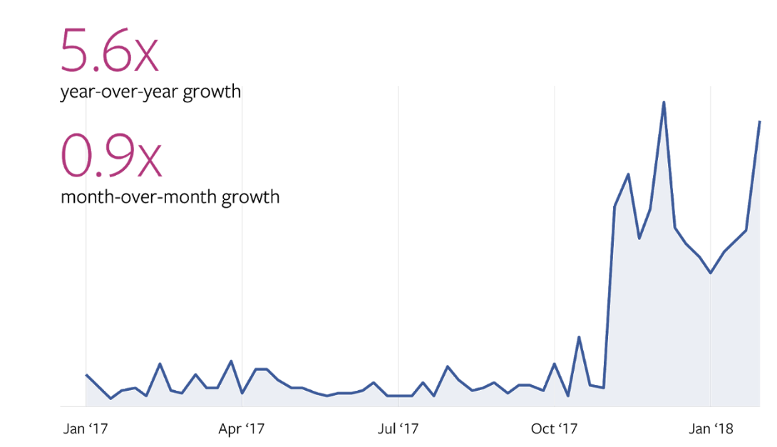 การเติบโตของจำนวนการพูดคุยกันผ่านแชตบอต