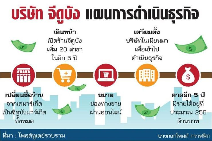 ทั้งนี้ นอกจากจะให้ความสำคัญกับการทำตลาดในประเทศไทย บริษัท จีดูบัง ยังมีแผนจะเข้าไปขยายธุรกิจในประเทศเมียนมา ด้วยการเข้าไปตั้งบริษัทในประเทศดังกล่าว