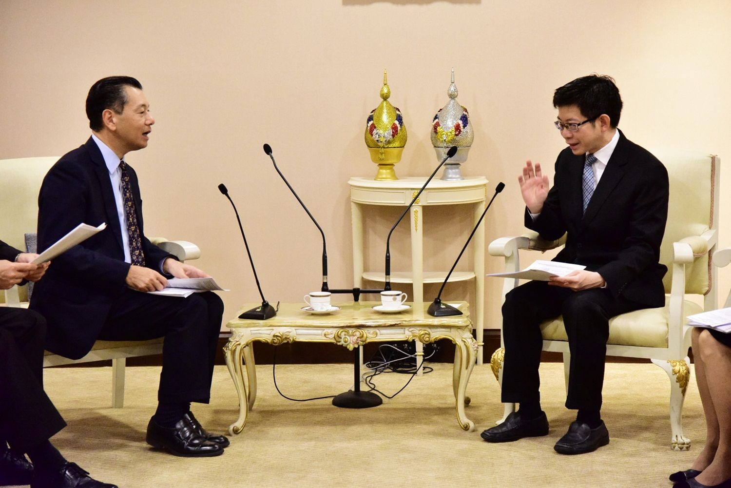 ภาพประกอบข่าว : ฮิโรกิ มิทสึมะตะ ประธานองค์การส่งเสริมการค้าต่างประเทศของญี่ปุ่น ณ กรุงเทพฯ หรือเจโทร เข้าพบ กอบศักดิ์ ภูตระกูล รัฐมนตรีประจำสำนักนายกรัฐมนตรี เพื่อเตรียมความพร้อม ก่อนคณะของสมคิด จาตุศรีพิทักษ์ รองนายกรัฐมนตรี จะเดินทางไปโรดโชว์ที่ประเทศญี่ปุ่น วันที่ 30 ม.ค.-2 ก.พ.นี้ ที่ทำเนียบรัฐบาล - ภาพ : ทำเนียบรัฐบาล