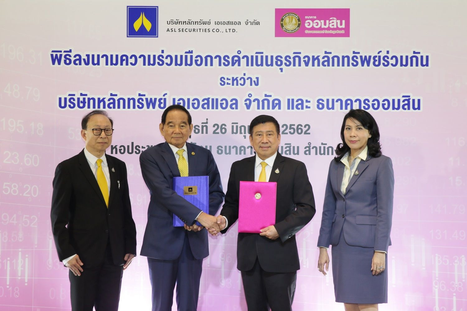 ธนาคารออมสิน จับมือ บล.เอเอสแอล ให้พนักงานขายสินค้าธุรกิจหลักทรัพย์ ให้ลูกค้า เพิ่มรายได้ให้กับธนาคาร