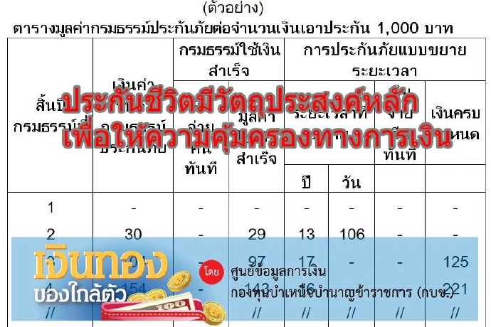 เมื่อเปิดเข้าไปดูตารางมูลค่ากรมธรรม์ จะพบข้อมูลสำคัญประกอบด้วย