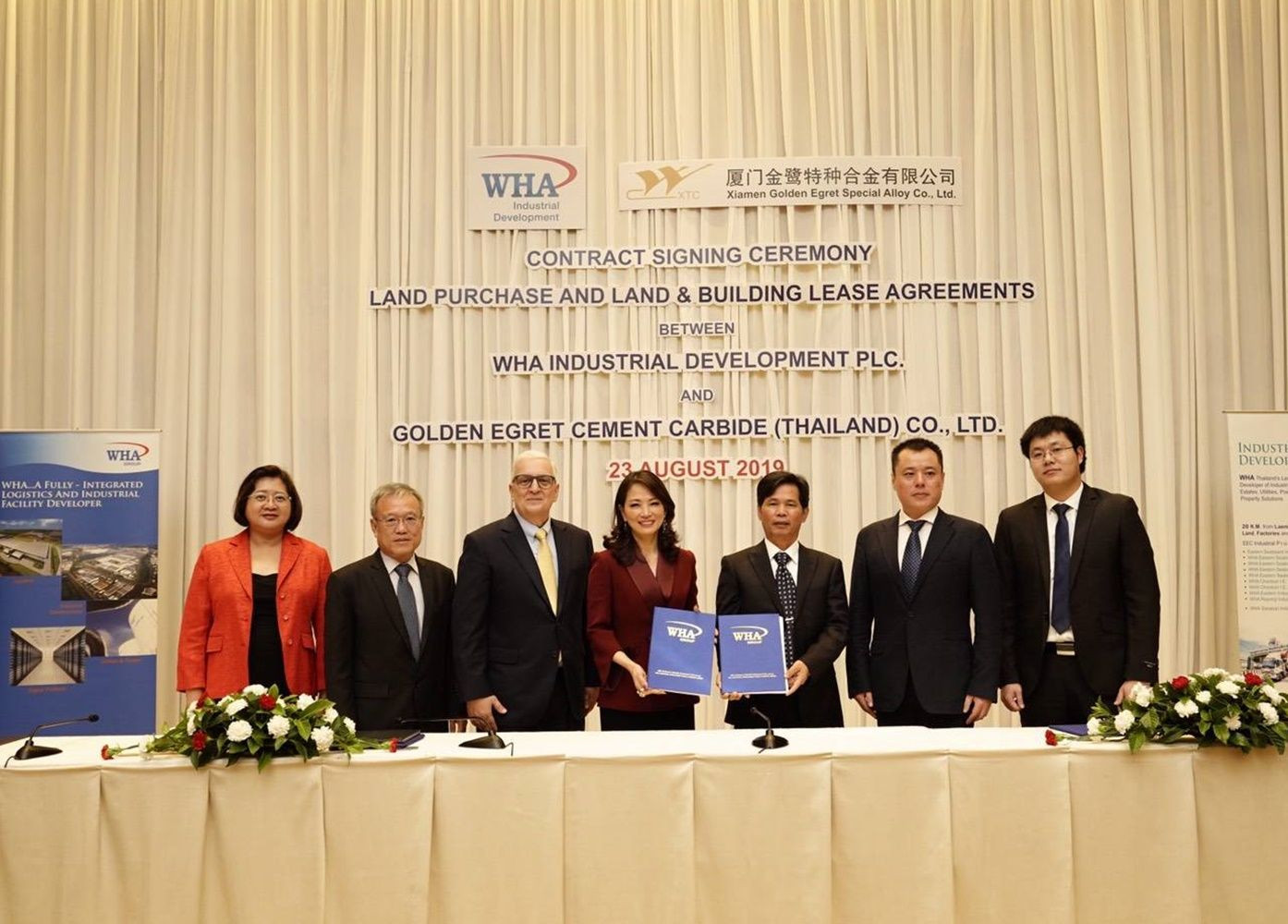 บริษัท ดับบลิวเอชเอ อินดัสเตรียล ดีเวลลอปเมนท์ ในเครือดับบลิวเอชเอ กรุ๊ป ผู้ให้บริการโซลูชั่นครบวงจรด้านโลจิสติกส์ นิคมอุตสาหกรรม สาธารณูปโภคและไฟฟ้า และดิจิทัล แพลตฟอร์มชั้นนำของไทย ได้ลงนามในสัญญาสองฉบับร่วมกับบริษัท โกลเดน อีเกร็ต ซีเมนต์ คาร์ไบด์ (ไทยแลนด์) ในเครือบริษัท เซียะเหมิน โกลเดน อีเกร็ต สเปเชียล อัลลอย ซึ่งเป็นรัฐวิสาหกิจในประเทศจีน