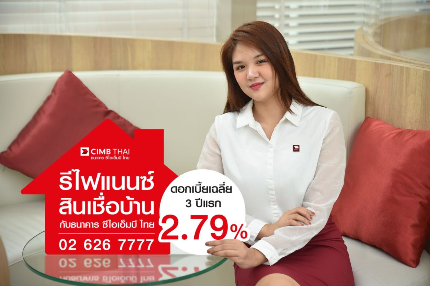 ธนาคาร ซีไอเอ็มบี ไทย เสนอโปรแกรมรีไฟแนนซ์สินเชื่อบ้านสุดประหยัด ช่วยปลดล็อกเป็นเจ้าของบ้านเร็วขึ้น ด้วยโปรแกรม ดอกเบี้ยเฉลี่ย 3 ปีแรก 2.79% ดอกเบี้ยตลอดอายุสัญญา 4.881% ฟรี ค่าประเมินราคาหลักทรัพย์ ค่าอากรแสตมป์ ค่าเบี้ยประกันอัคคีภัย 3 ปี สำหรับพนักงานประจำที่มีรายได้รวมต่อเดือน 50,000 บาทขึ้นไป