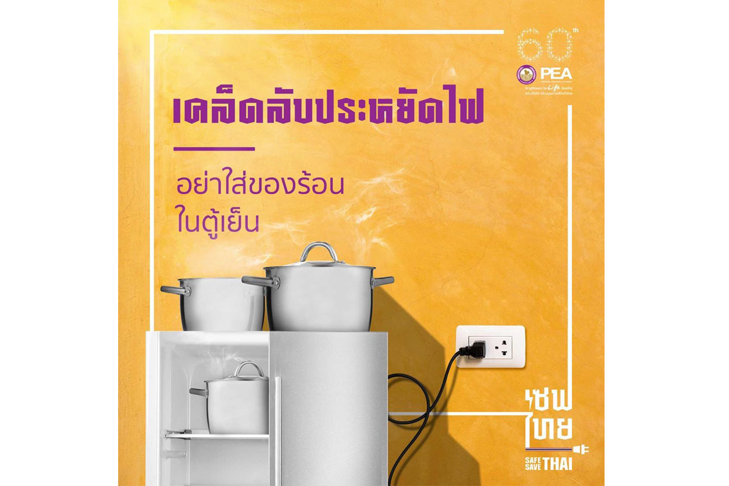 การไฟฟ้าส่วนภูมิภาค (PEA)แนะนำการใช้ตู้เย็นให้ประหยัดไฟและถูกวิธี ตู้เย็นเป็นเครื่องใช้ไฟฟ้าที่ต้องเสียบปลั๊กให้ทำงานตลอดเวลา เพราะเป็นเครื่องใช้ไฟฟ้าที่ให้ความเย็น และยืดอายุอาหารให้อยู่ได้นานขึ้น การใส่อาหารที่มีความร้อนเข้าไปในตู้เย็นนั้นจะทำให้กินไฟมากขึ้น