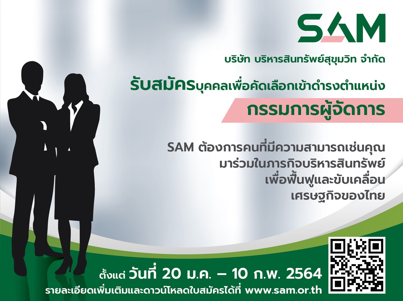 SAM เปิดรับสมัครบุคคลเพื่อดำรงตำแหน่งกรรมการผู้จัดการ ตั้งแต่บัดนี้ ถึง 10 กุมภาพันธ์ 2564
