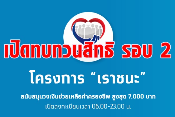 คลังใจดีเปิดให้ทบทวนสิทธิเราชนะรอบ 2 วันที่ 22 ก.พ. - 8 มี.ค. 64