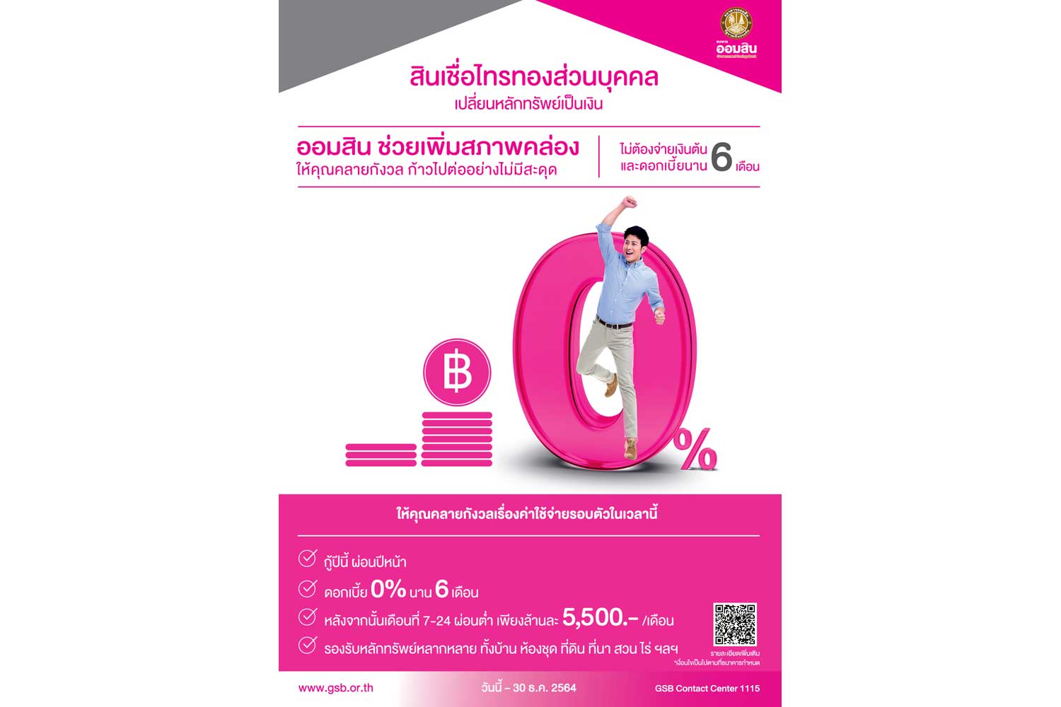 สินเชื่อไทรทองส่วนบุคคล เปลี่ยนหลักทรัพย์เป็นเงิน กับธนาคารออมสิน พร้อมโปรฯปลอดหนี้นาน 6 เดือน