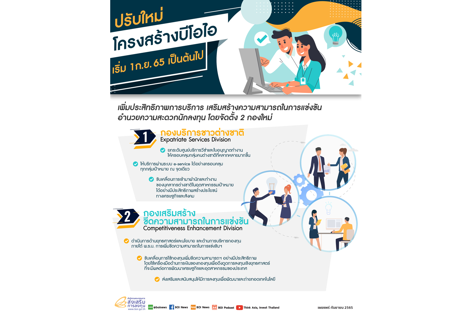 บีโอไอปรับโครงสร้างใหม่ เริ่ม 1 กันยา 65 เป็นต้นไป