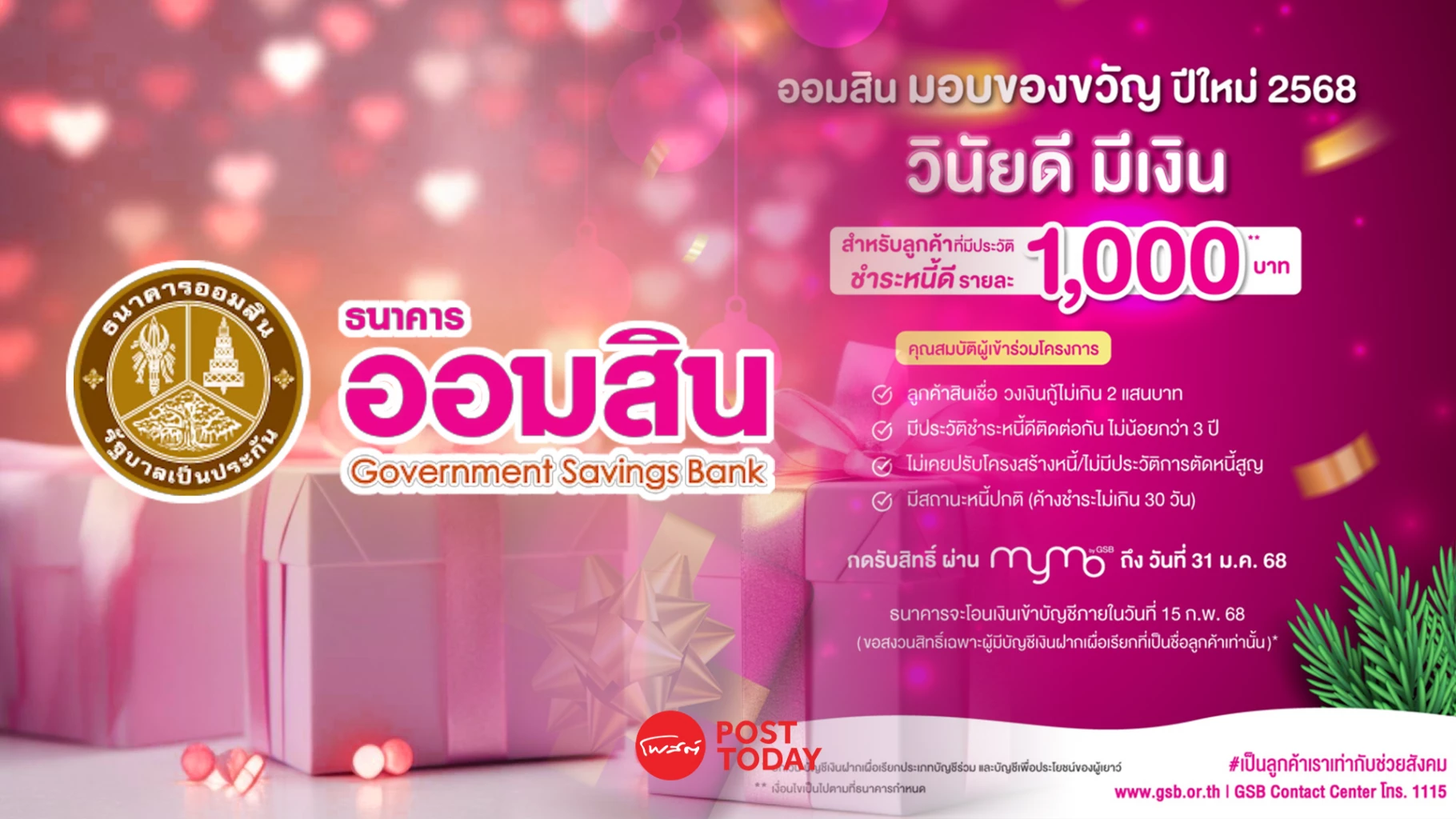 "ออมสิน" จัดของขวัญปีใหม่ 68 ให้ลูกค้าชำระหนี้ดีรายละ 1,000 บาท