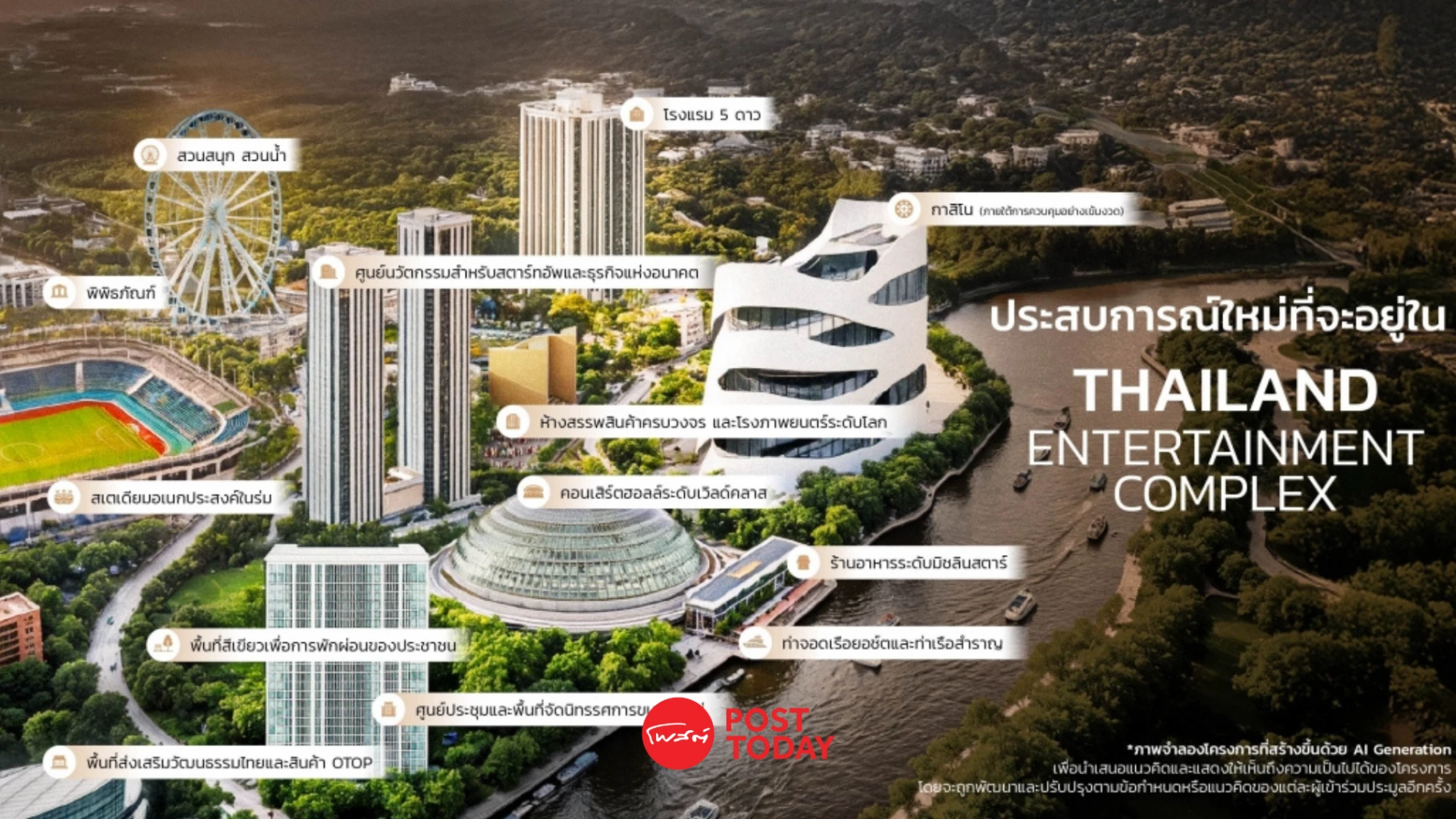 งานแถลงรายละเอียดของโครงการ “THAILAND ENTERTAINMENT COMPLEX” มหานครแห่งประสบการณ์ระดับโลก ที่กระทรวงการคลัง (วันที่ 4 มิถุนายน 2568) โดย นายจุลพันธ์ อมรวิวัฒน์ รัฐมนตรีช่วยว่าการกระทรวงการคลังและนายศึกษิษฏ์ ศรีจอมขวัญ รองเลขาธิการนายกรัฐมนตรี ได้ข้อสรุปถึงเหตุผลสำคัญที่รัฐบาลรุกเดินหน้าโครงการระดับแสนล้าน ในมิติต่างๆ ที่โพสต์ทูเดย์ได้เรียบเรียงรายละเอียดมา ว่าทำไมโครงการนี้จึงมีความสำคัญในระดับผลงานชิ้นโบว์แดงของรัฐบาลชุดนี้