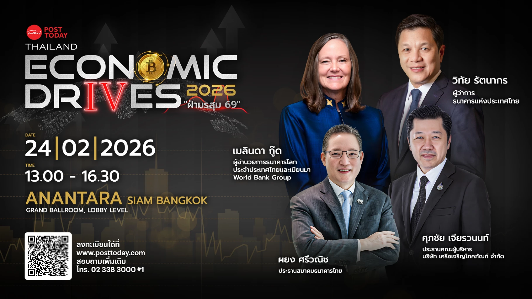 Posttoday ขอเชิญผู้บริหารและนักลงทุนร่วมงานสัมมนา "Posttoday Thailand Economic Drives 2026 ผ่ามรสุม 69" เพื่อวิเคราะห์ทิศทางเศรษฐกิจไทยที่กำลังเผชิญแรงกดดันรอบทิศ