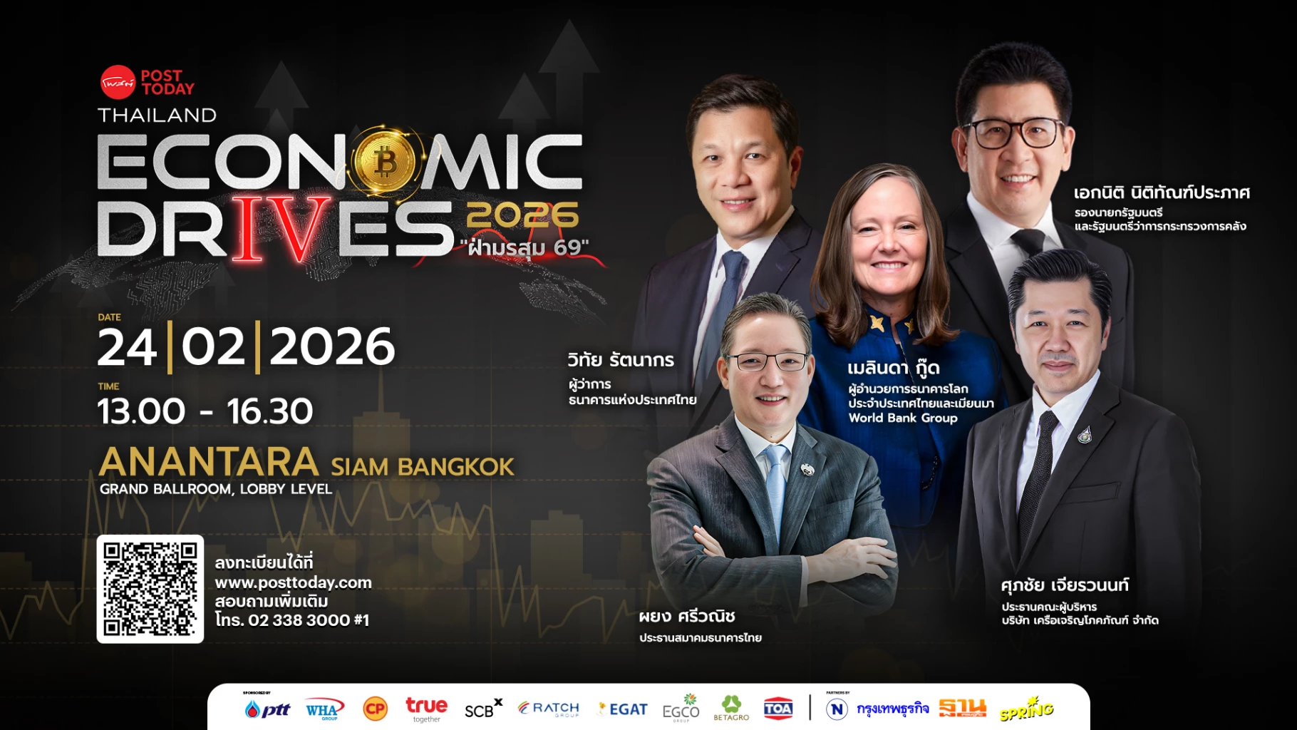Posttoday ขอเชิญผู้บริหารและนักลงทุนร่วมงานสัมมนา "Posttoday Thailand Economic Drives 2026 ผ่ามรสุม 69" เพื่อวิเคราะห์ทิศทางเศรษฐกิจไทยที่กำลังเผชิญแรงกดดันรอบทิศ