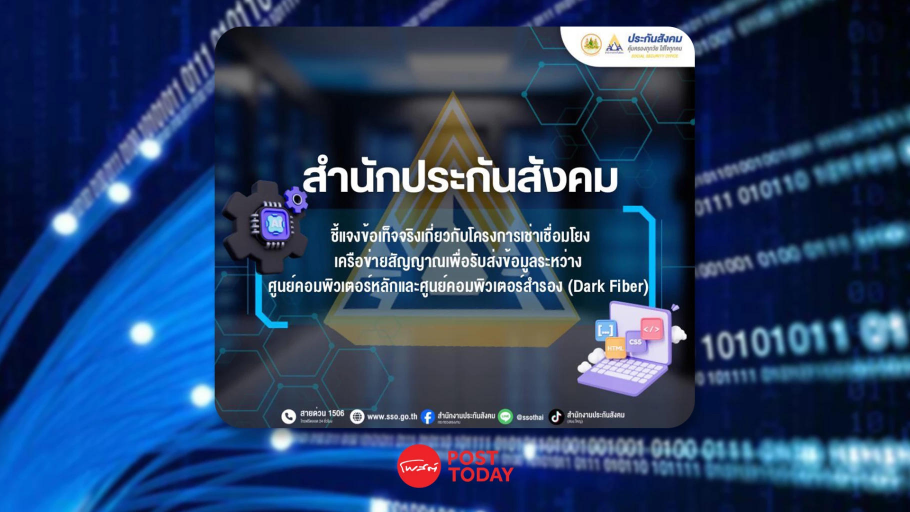 สปส.ชี้แจงข้อเท็จจริงโครงการเช่า Dark Fiber โปร่งใส ยืนยันไม่จ่ายเดือนละ 24 ลบ.ตามที่เป็นข่าว ใช้งบรวม 7.7 ลบ. เฉลี่ยเดือนละ 8.5 แสนบ. เพื่อสำรองข้อมูลและความปลอดภัยผู้ประกันตน