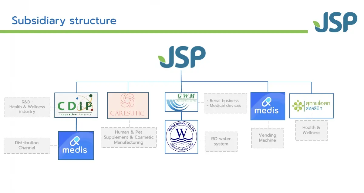 “ปัจจุบันประเทศไทยมีประชากรอายุ 60 ปีขึ้นไปมากกว่า 13 ล้านคน คิดเป็น 19% ของประชากรทั้งหมด ถือว่าได้ก้าวเข้าสู่ "สังคมสูงอายุอย่างสมบูรณ์" (Aged Society) already และคาดการณ์ภายในปี 2573 จำนวนผู้สูงอายุจะเพิ่มสูงขึ้นต่อเนื่อง มีประชากรอายุ 65 ปีขึ้นไป มากกว่า 20% ของประชากร กลายเป็น "สังคมสูงอายุระดับสุดยอด"(Super-Aged Society) และยังพบแนวโน้มคนไทยอายุยืนมากขึ้น JSP ที่มีจุดแข็งคือเป็นโรงงานผลิตยาและอาหารเสริม ที่มีสินค้าจากสารสกัดธรรมชาติและสมุนไพรที่ได้รับการยอมรับอย่างกว้างขวางจึงเข้ามาจับตลาดกลุ่มนี้อย่างเต็มรูปแบบ”นายพิษณุ กล่าว
