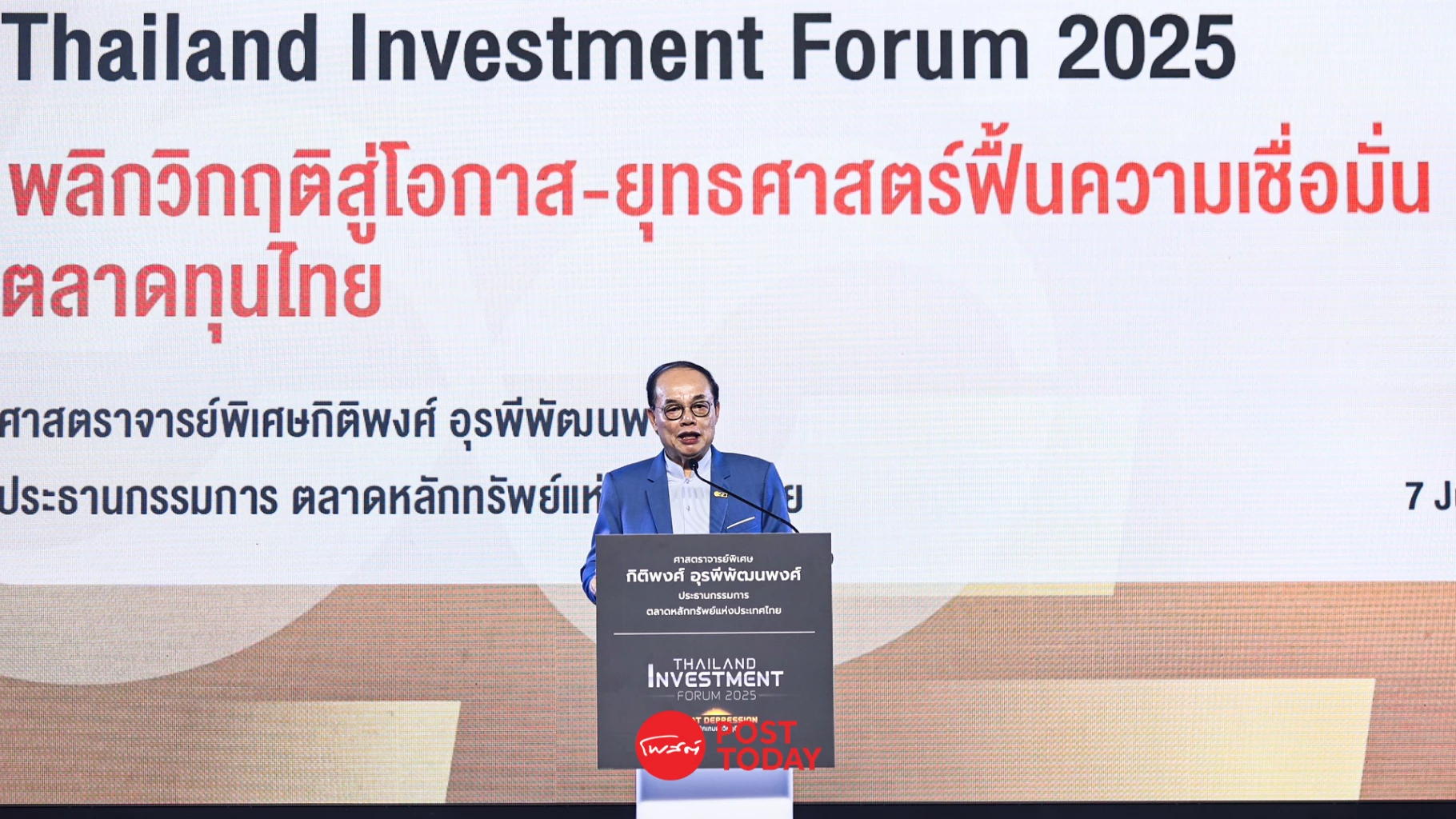 ศาสตราจารย์พิเศษ กิติพงศ์ อุรพีพัฒนพงศ์ ประธานกรรมการ ตลาดหลักทรัพย์แห่งประเทศไทย กล่าวในงานสัมมนา Thailand Investment Forum 2025 : Great Depression พลิกเกมฝ่าวิกฤติ จัดโดย กรุงเทพธุรกิจ ฐาน และโพสต์ทูเดย์ ในหัวข้อ "พลิกวิกฤติสู่โอกาส-ยุทธศาสตร์ฟื้นความเชื่อมั่นตลาดทุนไทย" ว่า ในช่วงที่ผ่านมา ตลาดทุนไทยต้องเผชิญกับแรงกดดันจากปัจจัยรอบด้าน ทั้งภาวะเศรษฐกิจโลกที่มีแนวโน้มชะลอตัว