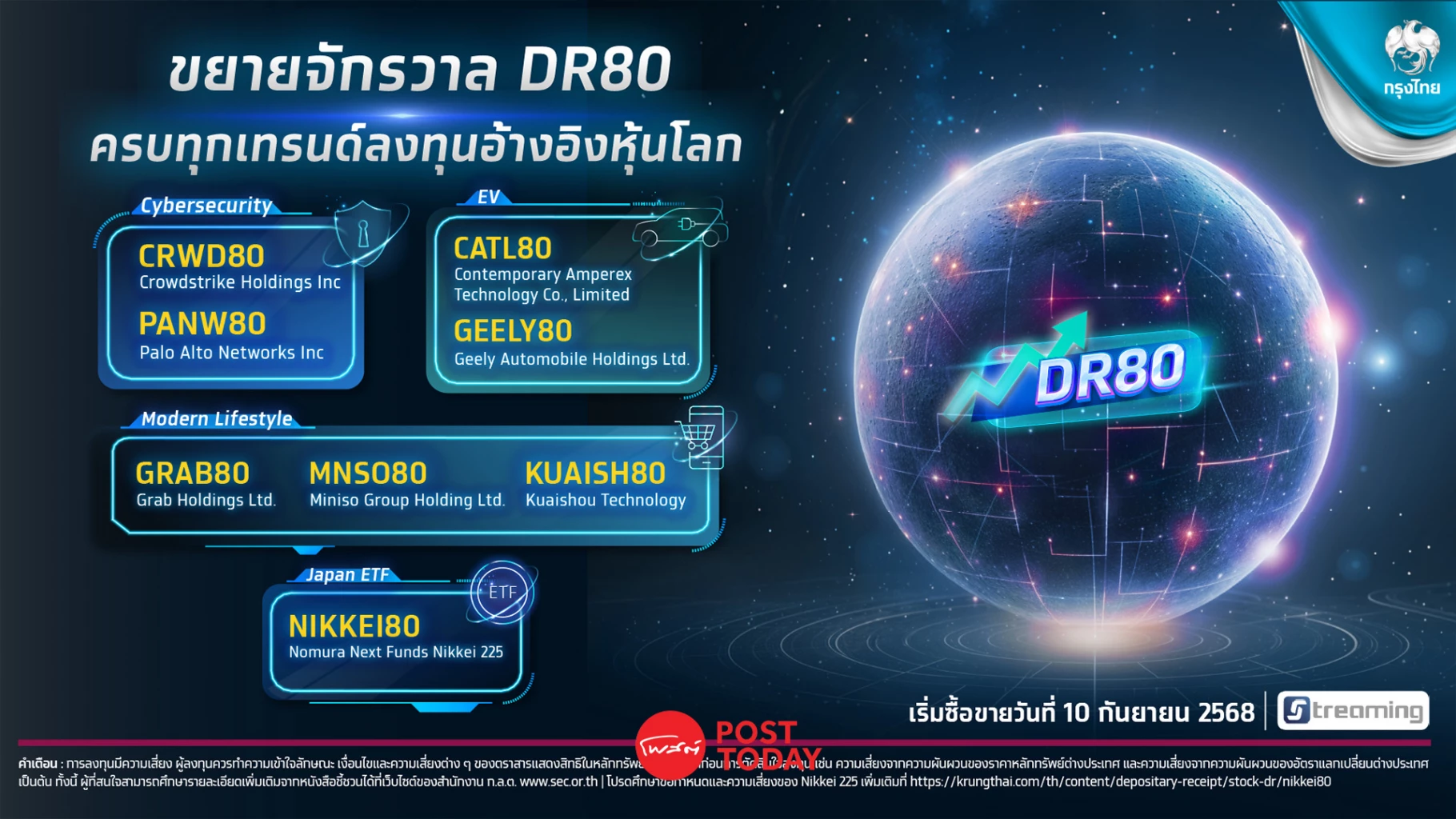 แบงก์กรุงไทย เตรียมเสนอขาย DR80 ใหม่ 8 หลักทรัพย์ อ้างอิงหุ้น “Miniso- Grab -CrowdStrike” และกลุ่มเติบโตของจีนและสหรัฐฯ ดีเดย์ 10 ก.ย.68