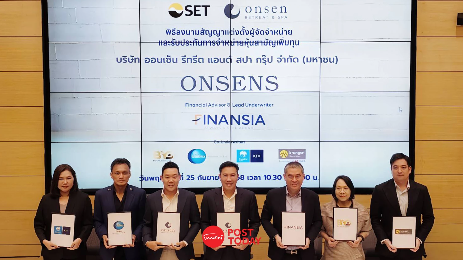 - “ออนเซ็น รีทรีต แอนด์ สปา กรุ๊ป” หรือ ONSENS เคาะราคาไอพีโอ 2.05 บาท เปิดจองซื้อ 29-30 ก.ย. และ 1 ต.ค.นี้ คาดเทรด SET 7 ต.ค.นี้