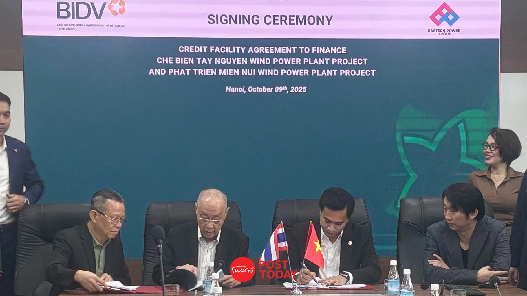 เมื่อวันที่ 9 ต.ค.2568 บริษัท อีสเทอร์น พาวเวอร์ กรุ๊ป จำกัด (มหาชน) หรือ EP โดยนายยุทธ ชินสุภัคกุล ประธานกรรมการ และนายกฤษฎา พฤติภัทร กรรมการบริหาร ร่วมลงนามกับ Mr. Doan Viet Nam รองประธานเจ้าหน้าที่บริหาร และ Mr. Pham Van Toan ผู้จัดการสาขา Tayho แห่งธนาคาร Bank for Investment and Development of Vietnam (BIDV) เพื่อรับการสนับสนุนทางการเงิน (Credit Facility) สำหรับโครงการโรงไฟฟ้าพลังงานลม Che Bien Tay Nguyen (CBTN) และ Phat Trien Mien Nui (PTMN) ในจังหวัด Gia Lai ประเทศเวียดนาม รวมกำลังการผลิตติดตั้ง 99 เมกะวัตต์ มูลค่าโครงการประมาณ 2.3 ล้านล้านเวียดนามดอง หรือราว 3,000 ล้านบาท