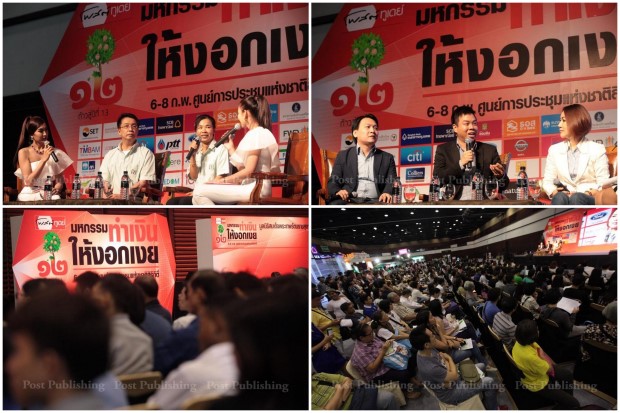 เมื่อวันที่ 7 ก.พ. บรรยากาศงาน "มหกรรมทำเงินให้งอกเงย" จัดโดยหนังสือพิมพ์โพสต์ทูเดย์ ที่ศูนย์การประชุมแห่งชาติสิริกิติ์ ระหว่างวันที่ 6-8 ก.พ.มีประชาชนเดินทางมาร่วมงานอย่างคึกคัก นอกจากจะมีสถาบันการเงินต่างๆมาจัดแคมเปญโปรโมชั่นด้านการลงทุนแล้ว ยังมีการเสวนาเนื้อหาเข้มข้นเรื่องการเงินและการลงทุน