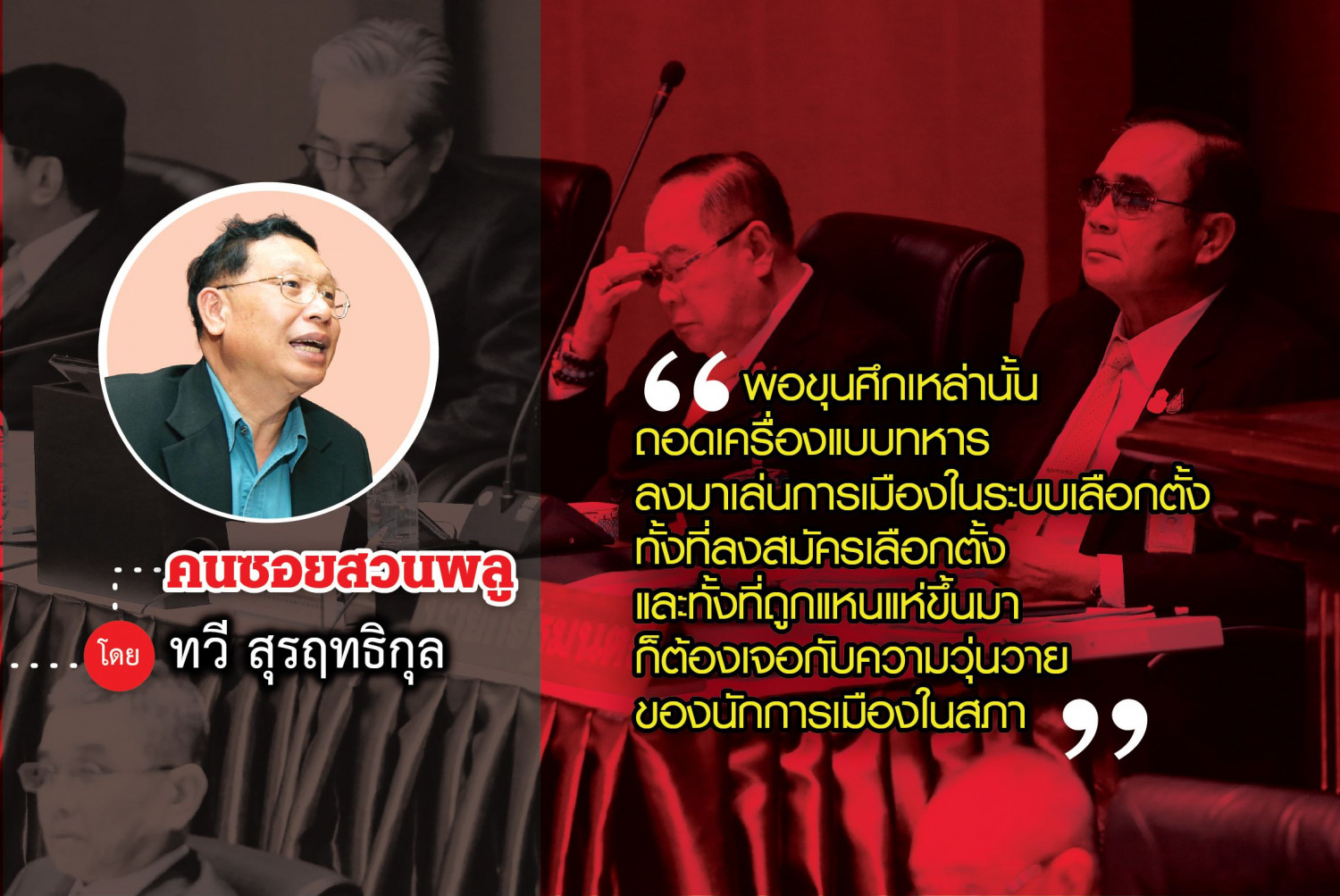 ขณะนี้รัฐบาลของประเทศไทยมีหัวหน้ารัฐบาลเป็น “ขุนศึก” คือนายทหารใหญ่ที่เคยคุมกำลังหลักของประเทศ ซึ่งตามประวัติศาสตร์ประเทศไทยก็มีขุนศึกเคยอยู่ในตำแหน่งนายกรัฐมนตรีนี้มาแล้วหลายคน แต่ละคนก็มีชะตากรรมคล้ายๆ กัน คือ ในตอนที่ยังมีอำนาจเด็ดขาดอยู่ในช่วงหลังรัฐปะหาร ก็ดูจะข่มขวัญบรรดานักการเมืองให้สงบนิ่งได้ แต่พอขุนศึกเหล่านั้นถอดเครื่องแบบทหารลงมาเล่นการเมืองในระบบเลือกตั้ง ทั้งที่ลงสมัครเลือกตั้งและทั้งที่ถูก “แหนแห่” ขึ้นมา ก็ต้องเจอกับความวุ่นวายของนักการเมืองในสภา ซึ่งทีนี้ก็ได้แสดง “นิสัยสันดาน” ออกมาอย่างแท้จริง จึงไม่ต่างอะไรกับขุนศึกที่จะต้องมาควบคุมฝูงสัตว์ที่มีพฤติกรรมเดิมๆ ถ้าโชคดีก็อาจจะได้ “เลี้ยงลิง” คือพอจะทำอะไรที่ฝึกฝนเปลี่ยนนิสัยหรือควบคุมพฤติกรรมได้บ้าง แต่ถ้าโชคร้ายก็อาจจะเจอเข้ากับ “ฝูงชะนี” ที่อาจจะแว้งกลับมาทำร้ายได้เสมอ แม้จะมีการ “เลี้ยงดู” เป็นอย่างดี