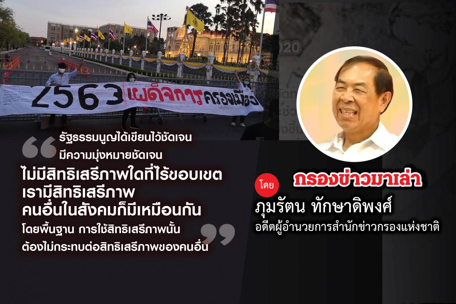 สมควรพิจารณาว่า สิ่งที่นักศึกษากลุ่มนี้ทำเป็นการใช้สิทธิเสรีภาพตามรัฐธรรมนูญหรือไม่ การวิจารณ์นายกรัฐมนตรีทำได้มากน้อยขนาดไหน อะไรที่ทำได้ อะไรที่ทำไม่ได้ บางคนอาจอ้างว่า เมื่อเป็นนักการเมืองแล้วต้องถูกด่าได้ แต่ถ้าด่ากันแรงๆแบบนี้ทำได้หรือไม่ รัฐธรรมนูญคงไม่มีเจตนารมณ์ให้วิจารณ์กันด้วยถ้อยคำหยาบคาย หรือด่ากันแรง ๆ แบบนี้ หากไม่ชัดเจน นักการเมืองทั้งฝ่ายรัฐบาลและฝ่ายค้านก็คงเสียว ๆ เหมือนกันว่า วันหนึ่ง ตัวเองจะโดนนักศึกษาเขียนโปสเตอร์ด่าแบบนี้ขึ้นรถตะเวนไปทั่วกรุง แล้วเอาไปขยายผลต่อในสื่อออนไลน์ แบบนี้หรือไม่ ส่วนนักเคลื่อนไหวทางการเมืองเมื่อเห็นว่า กลุ่มนี้ทำได้โดยไม่ผิด ก็อาจมีพฤติกรรมเลียนแบบ ต่อไปคู่กรณีคงด่ากันเละ