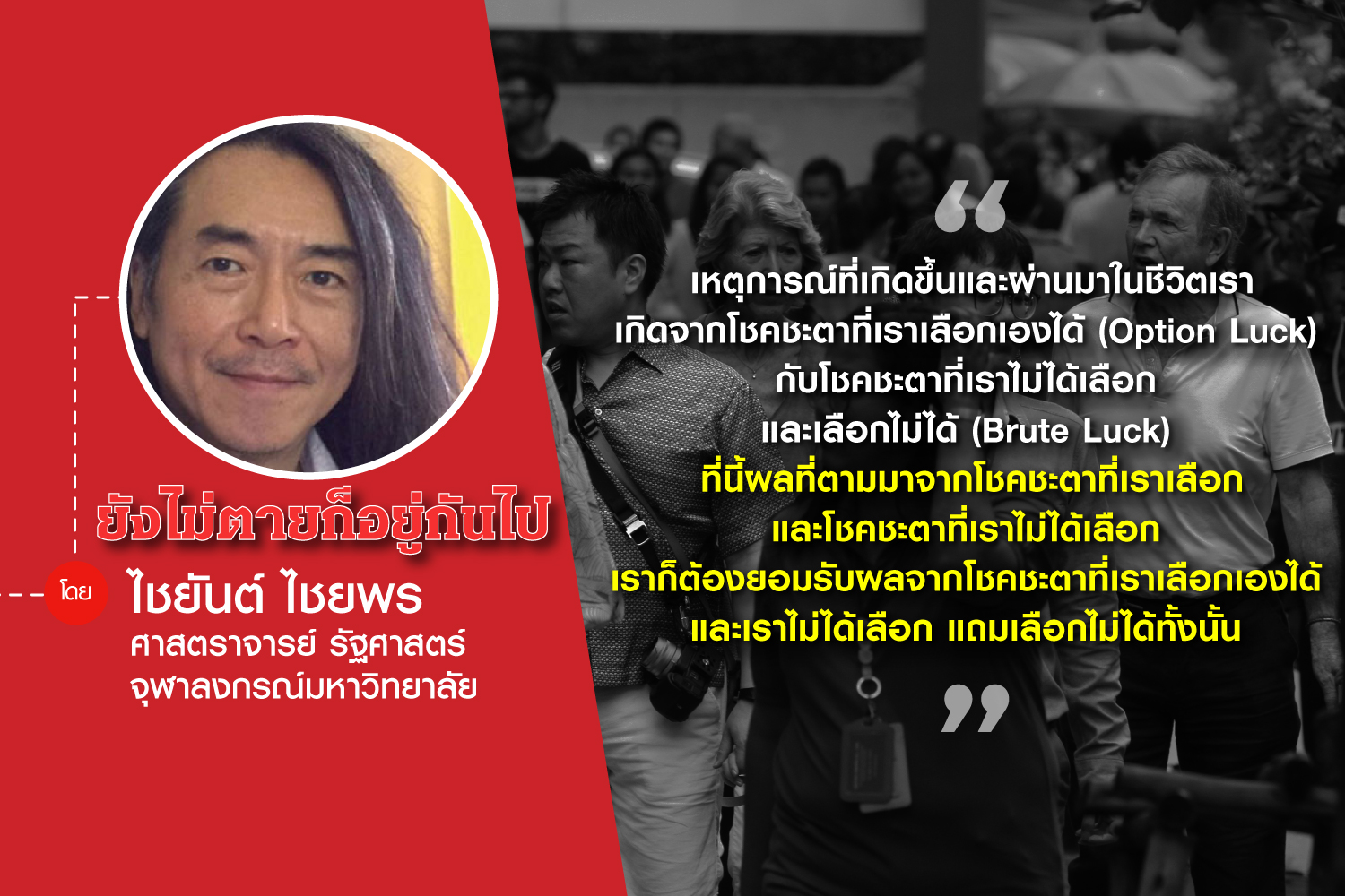 ผมขอแทรกเพื่อเพิ่มความเข้าใจเรื่องนี้กับผู้อ่านนิดนึงครับ หลังจากที่ผมได้อ่าน ‘ผู้ใหญ่ลีกับข้อเสนอเรื่องความยุติธรรมของอาจารย์ดอว์กิ้น’ (ตอนที่สิบสอง) ผมก็ได้ความรู้เพิ่มเติมในเรื่องโชคชะตา (Luck) ของอาจารย์ดอว์กิ้น ซึ่งอาจารย์ดอว์กิ้นได้ใช้เพื่อบอกว่า เหตุการณ์ที่เกิดขึ้นและผ่านมาในชีวิตเราเกิดจากโชคชะตาที่เราเลือกเองได้ (Option Luck) กับโชคชะตาที่เราไม่ได้เลือก และเลือกไม่ได้ (Brute Luck) ที่นี้ผลที่ตามมาจากโชคชะตาที่เราเลือกและโชคชะตาที่เราไม่ได้เลือก เราก็ต้องยอมรับผลจากโชคชะตาที่เราเลือกเองได้ และเราไม่ได้เลือก แถมเลือกไม่ได้ทั้งนั้น