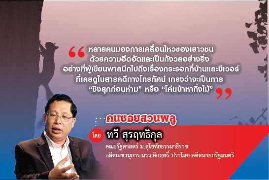 หลายคนมองการเคลื่อนไหวของเยาวชนด้วยความอึดอัดและเป็นกังวลอย่างยิ่ง อย่างที่ผู้เขียนพาลนึกไปถึงเรื่องกระรอกที่บ้านและบีเวอร์ที่เคยดูในสารคดีทางโทรทัศน์ เกรงว่าจะเป็นการ “ชิงสุกก่อนห่าม” หรือ “โค่นป่าหากิ่งไม้” แต่ถ้าเราจะมองให้ลึก ๆ โดยเอาตัวเราที่เคยเป็นเยาวชนนั้นมาเช่นกัน ก็อาจจะสบายใจขึ้นบ้างว่า “ถึงเวลาที่อะไรจะเปลี่ยนก็ต้องเปลี่ยน” ที่รวมถึงตัวเยาวชนเหล่านี้ด้วย
