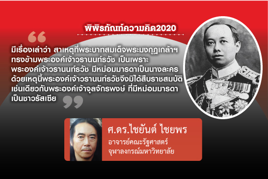 ด้วยเหตุนี้พระองค์เจ้าวรานนท์ธวัชจึงมิได้สืบราชสมบัติ เช่นเดียวกับพระองค์เจ้าจุลจักรพงษ์ ที่มีหม่อมมารดาเป็นชาวรัสเซีย
