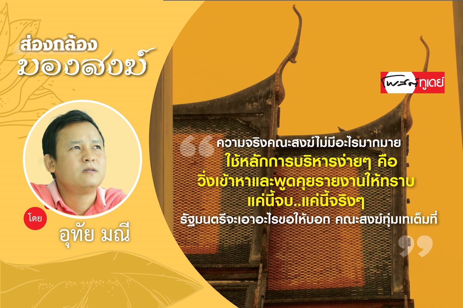 หากทำได้รับรองได้รับเสียงสาธุการจากคณะสงฆ์ทั่วประเทศ ดีไม่ดีเลือกตั้งคราวหน้า มีพระสงฆ์เป็นหัวคะแนนให้เป็นของแถม..