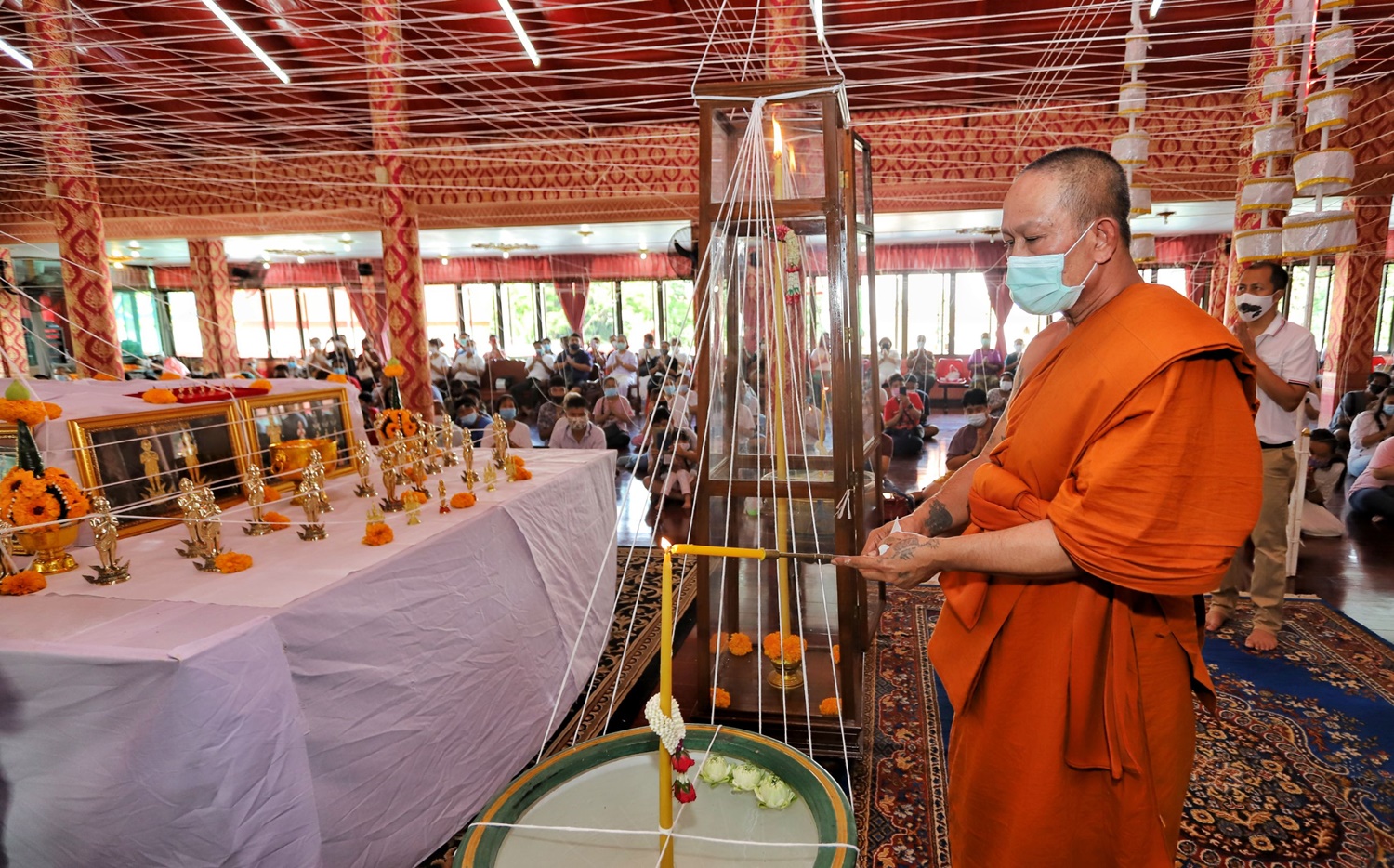 เมื่อวันที่ 30 ส.ค.เวลา16.09 น.ที่ศาลาการเปรียญวัดสายไหม ต.คูคต อ.ลำลูกกา จ.ปทุมธานี พระครูโสภณภัรเวทย์ (พระอาจารย์อ๊อด) เจ้าอาวาสวัดสายไหม เป็นประธานในพิธี งานพุทธาภิเษก วัตถุมงคล ไอ้ไข่ วัดศรีมาประสิทธิ์ รุ่นสรงน้ำ โดยมี ศิษยานุศิษย์ประชาชนร่วมในพิธีพุทธาภิเษก เป็นจำนวนมาก โดยทางวัดได้จัดพิธีภายใต้มาตรการ Social Distancing ทุกคนต้องสวมใส่หน้ากากอนามัยหรือหน้ากากผ้า และตรวจวัดอุณหภูมิก่อนเข้าพิธีพุทธาภิเษก