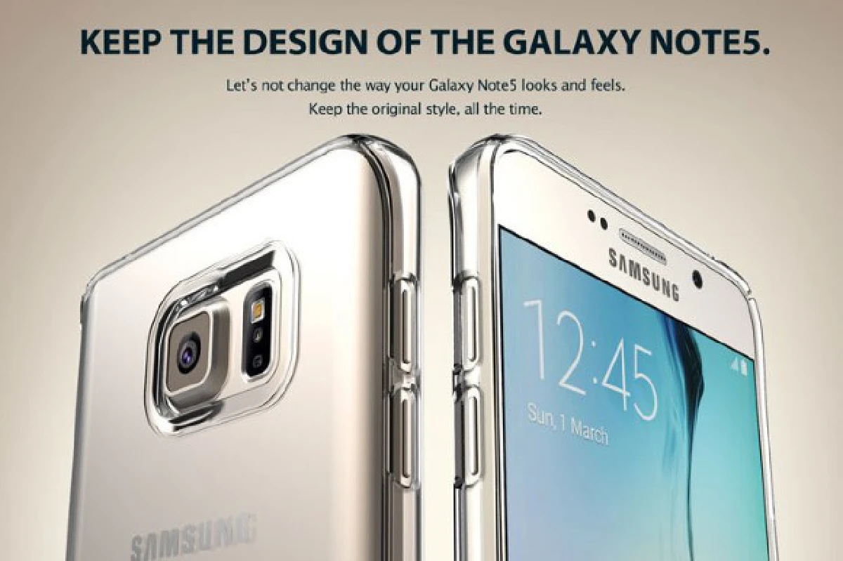 หลุดกันมาชัดๆ อย่างจัดเต็มสำหรับสมาร์ทโฟนจอใหญ่ของซัมซุงอย่าง 'กาแล็คซี โน๊ต5' ที่คราวนี้หลุดมาพร้อมๆ กับภาพโปรโมตเคสใสยี่ห้อ Rearth ซึ่งแน่นอนว่างานนี้ได้เห็นทะลุเคสกันชัดๆ เลยทีเดียว โดยจะเห็นได้ว่าดีไซน์ของโน๊ต5 จะละม้ายคล้ายกับซัมซุง กาแล็คซี เอส6