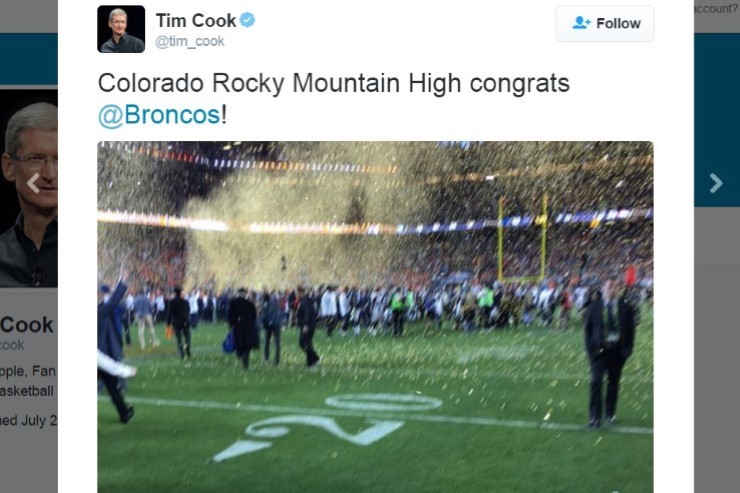 แซวกันสนุกปากกันไปสนั่นโลกโซเชียลมีเดียกันเลยทีเดียว เมื่อซีอีโอแอปเปิลอย่าง'ทิม คุก'ได้ใช้มือถือ'ไอโฟน'ซึ่งเป็นผลิตภัณฑ์ชื่อดังจากบริษัทตัวเองถ่ายภาพบรรยากาศหลังจบงานแข่งขัน Super Bowl ปี 2016 พร้อมอัพโหลดลง Twitter ส่วนตัวอย่างไม่รีรอ จนเหมือนจะลืมเอะใจว่าภาพถ่ายจากมือถือตัวเองนั้นเบลอจนแทบไม่เห็นรายละเอียดอะไรเลย