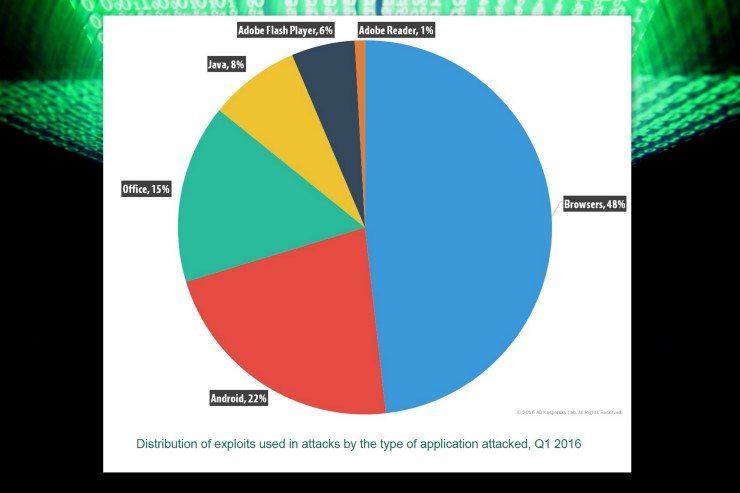 ทั้งนี้ ในไตรมาสแรกของปี 2559 แคสเปอร์สกี้ แลป ตรวจพบแรนซัมแวร์สูงสุด 3 อันดับ ได้แก่ Teslacrypt (58.4%) CTB-Locker (23.5%) และ Cryptowall (3.4%) ซึ่งทั้ง 3 รายการแพร่กระจายผ่านอีเมลสแปมพร้อมไฟล์แนบหรือเว็บลิงก์ไปยังเพจอันตราย โดยประเทศจีนเป็นประเทศที่ถูกโจมตีด้วยภัยคุกคามโมบายมากที่สุด คิดเป็น 40% รองลงมาคือบังกลาเทศ 28% และอุซเบกิสถาน 21% ส่วนประเทศที่ปลอดภัยที่สุด คือ ไต้หวัน 2.9% ออสเตรเลีย 2.7% และญี่ปุ่น 0.9%