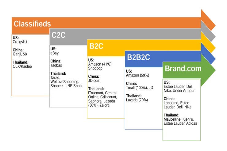 หากตลาดในเอเชียตะวันออกเฉียงใต้ยังคงขยับตามวัฏจักรเดิมต้องไม่ใช่การเดินตาม แต่เป็นการ “วิ่ง” ตาม เพราะเทรนด์นั้นเกิดขึ้นเร็วมาก จนรู้สึกได้ว่าธุรกิจประเภทโพสต์ขายสินค้าอย่าง OLX, ประเภท C2C (Tarad, Tokopedia, Shopee), B2C (Lazada, Zalora, MatahariMall) และ Brand.com (L’Oreal, Estee Lauder, Adidas) นั้น การเกิดขึ้นพร้อมกัน ไม่ได้ค่อยเป็นค่อยไปเหมือนอย่างสมัยก่อน แปลว่าวัฏจักรนี้ไม่ได้วนอยู่แบบเดิมและมีรูปแบบที่ตายตัวอีกต่อไป