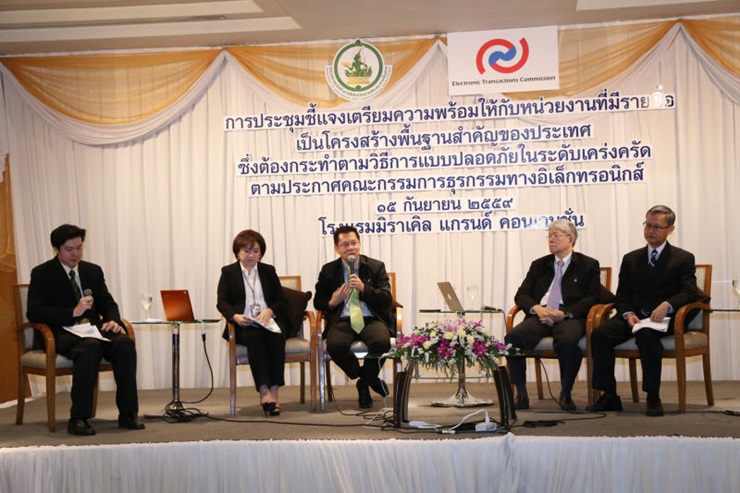 กระทรวงเทคโนโลยีสารสนเทศและการสื่อสาร (ไอซีที) จัดประชุมชี้แจงเตรียมความพร้อมให้กับหน่วยงานที่มีรายชื่อเป็นโครงสร้างพื้นฐานสำคัญของประเทศ ซึ่งต้องรักษาความปลอดภัยของข้อมูลในระดับ “เคร่งครัด” ตามประกาศคณะกรรมการธุรกรรมทางอิเล็กทรอนิกส์ เมื่อวันที่ 15 ก.ย.ที่ผ่านมา
