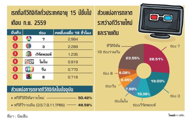 ทีวีดิจิทัล 6 อันดับแรกระอุ ช่องใหม่งัดกลยุทธ์ชิงที่ 3