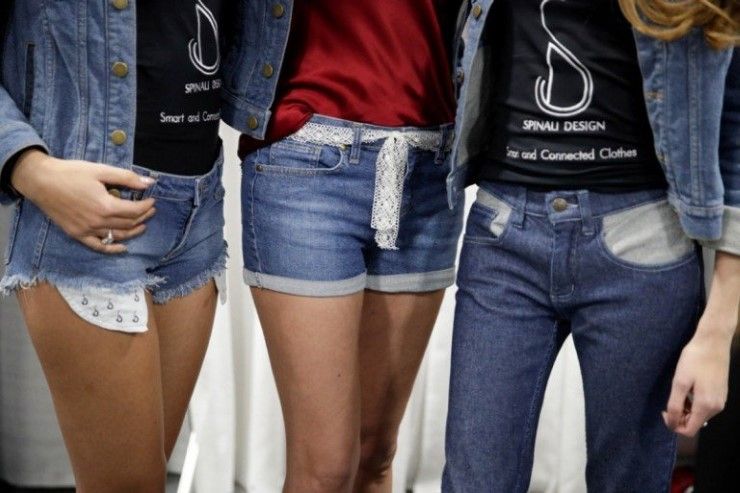 ดูเป็นไอเดียที่ไม่น่าเชื่อ ว่าจะเข้ากันได้ระหว่างการสื่อสารด้วยการสั่น กับเสื้อผ้าอย่างยีนส์ ไอเดียผนวกแฟชั่น และเทคโนโลยีเข้าด้วยกันนี้เป็นของ Spinalli Design บริษัทฝรั่งเศส ที่ก่อนหน้านี้เคยผลิตชุดว่ายน้ำอัจฉริยะมาแล้ว โดยจะแจ้งเตือนไปยังผู้สวมใส่หากเขาอยู่กลางแดดมากเกินไป