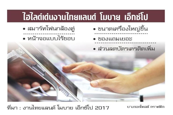 ด้วยเทรนด์สมาร์ทโฟนรูปแบบใหม่ทั้งกล้องคู่ หน้าจอกว้างไร้ขอบและระบบปฏิบัติการใหม่ ต่างก็เป็นปัจจัยที่ทำให้ผู้บริโภคที่กำลังต้องการเปลี่ยนเครื่องใหม่น่าจะมาจับจ่ายในงานนี้ อีกทั้งเป็นจังหวะที่ค่ายยักษ์ใหญ่ระดับโลกมีรุ่นแฟล็กชิปเข้ามาทำตลาด รวมทั้งของแถมภายในงานก็จัดเต็มทุกค่าย จึงน่าจะเป็นสีสันสำคัญของงานสิ้นปีครั้งนี้