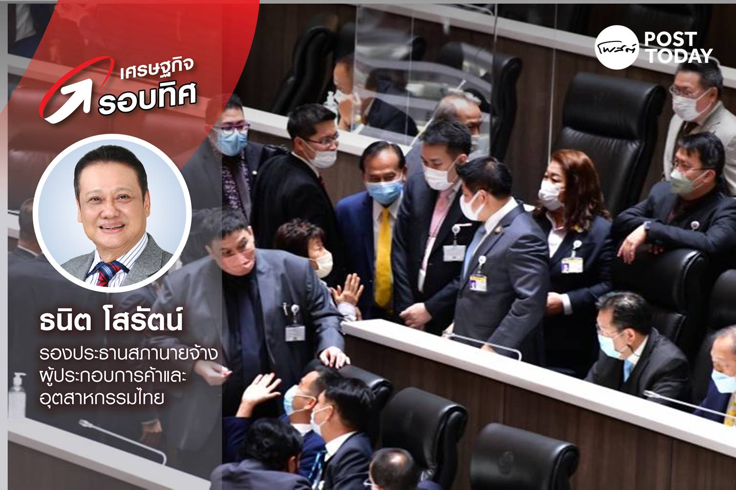 ต้องยอมรับว่าปัจจัยที่ฉุดรั้งการเติบโตทางเศรษฐกิจและลดความเลื่อมล้ำมาจาก “การเมืองน้ำเน่า” ในช่วงสองทศวรรษที่ผ่านมาการเมืองแบ่งขั้ว-แบ่งฝ่ายแยกออกเป็นกลุ่มสีต่างๆ รวมถึงการปฏิวัติ 2 รอบได้สร้างความบอบช้ำและบาดแผลให้กับประเทศ แม้แต่ “กลุ่มทหารรักชาติ” ที่พังประตูประชาธิปไตยเข้ามาแก้ปัญหาช่วงแรกดูเป็นความหวังเป็นอัศวินม้าขาวมาแก้ปัญหาแต่เวลาผ่านมากลับกลายเป็นปัญหาเสียเอง การติดกับดักตัวเองทำให้ติดอยู่ในบ่วงอำนาจที่ยาวเกินไปรวมถึงการขาดทีมเศรษฐกิจมืออาชีพที่จะแก้ปัญหาวิกฤตเศรษฐกิจที่ซับซ้อนเกินกว่าที่อดีต “เทคโนแครต” ที่เป็นอดีตข้าราชการหรือรัฐวิสาหกิจจะแก้ปัญหาได้ ทำให้การฟื้นตัวเศรษฐกิจช้ากว่าที่ควรจะเป็นและ กลายเป็นปัญหาของประเทศ
