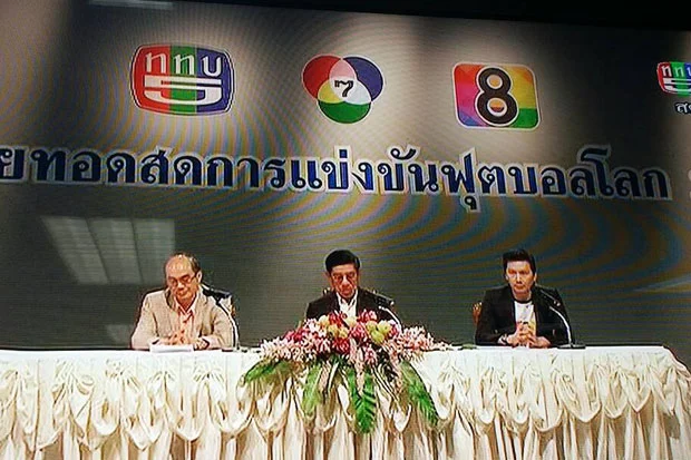 วันที่ 12 มิ.ย. พลโท ชาตอุดม ติตถะสิริ กรรมการผู้จัดการใหญ่สถานีวิทยุโทรทัศน์กองทัพบก ช่อง5 พร้อมด้วย นายพลากร สมสุวรรณ กรรมการผู้จัดการ สถานีโทรทัศน์สีกองทัพบก ช่อง7 และดร.องอาจ สิงห์ลำพอง กรรมการผู้อำนวยการสถานีโทรทัศน์ช่อง8 ร่วมกันแถลงข่าว การร่วมกันถ่ายทอดสดฟุตบอลโลก ทั้ง64นัด เริ่มตั้งแต่วันนี้(12มิ.ย.)จนถึงวันที่13ก.ค.  เพื่อส่งความสุขให้คนไทยในช่วงการเปลี่ยนแปลงและสถานการณ์ทางการเมืองที่ผ่านมา