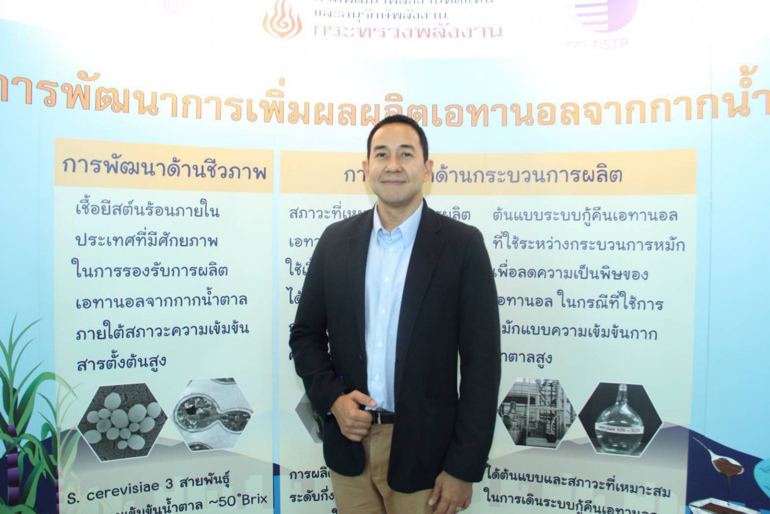 “พพ.ได้ร่วมกับ วว. ภายใต้การสนับสนุนการวิจัย จากกองทุนเพื่อส่งเสริมการอนุรักษ์พลังงานในการทำวิจัยและพัฒนาเทคโนโลยีเพื่อเพิ่มผลผลิตเอทานอล ในปัจจุบันโครงการวิจัยได้ดำเนินการสำเร็จแล้ว” สายันต์ กล่าว