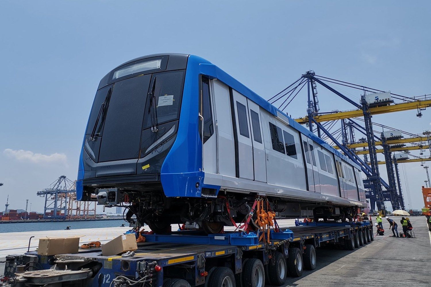 รถไฟฟ้าสายสีน้ำเงินขบวนแรกส่งถึงประเทศไทยแล้ว
