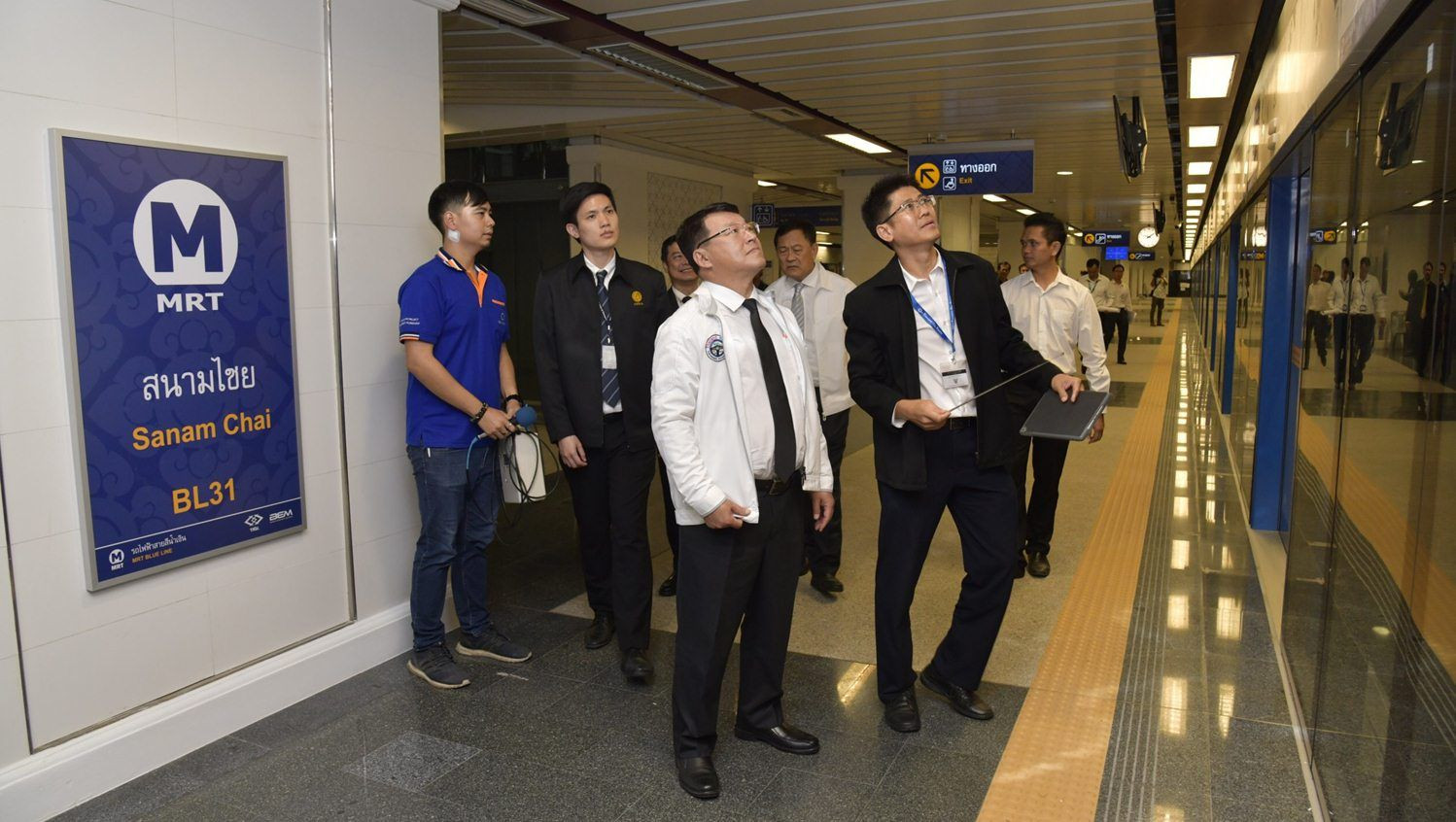 “จุดที่เราอยู่คือสถานีสนามไชย ส่วนต่อขยายจะลอดใต้แม่น้ำเจ้าพระยาและจะสิ้นสุดที่บางแค ซึ่งขณะนี้การดำเนินการเรื่องระบบไฟฟ้า,ราง เกือนจะแล้วเสร็จ อยู่ในขั้นตอนการทดลอง วันนี้มาตรวจดูเพื่อให้ความมั่นใจกับผู้โดยสารว่าจะเปิดเดินรถครั้งแรกวันที่ 12 ส.ค.นี้ ซึ่งเป็นวันสำคัญของคนไทย”นายไพรินทร์ กล่าว